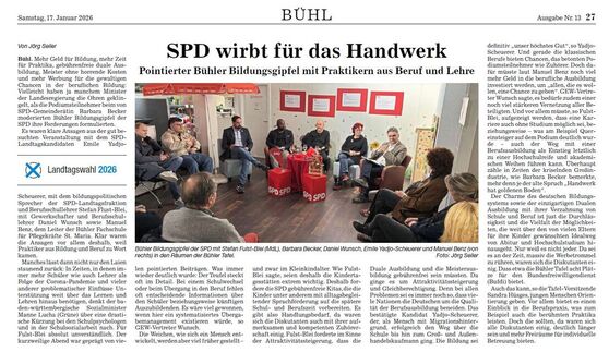 herzlich Willkommen auf der Website des SPD Ortsverein Bühl. Hier berichten wir über aktuell anstehende Termine und hier erfahren Sie Details über unsere politische Arbeit.